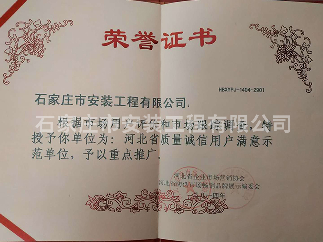 河北省質(zhì)量誠(chéng)信用戶滿意示范單位