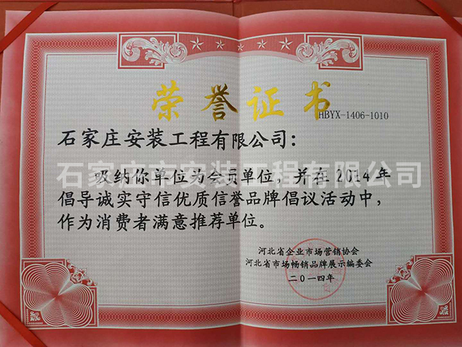 消費(fèi)都滿意推薦單位榮譽(yù)證書(shū)